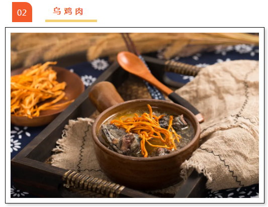 乌鸡具有滋阴清热、补肝益肾等作用。乌鸡肉中含氨基酸高于普通鸡肉,是营养价值极高的滋补品。如果经常感到精神不振、乏力,可以喝点乌鸡汤。正确的做法是将乌骨鸡洗净,装入锅内,加入葱、生姜等配料炖煮即可。如果有条件,可以加点当归、党参、黄芪等药材。如果没有乌骨鸡的话,也可以用柴鸡代替。