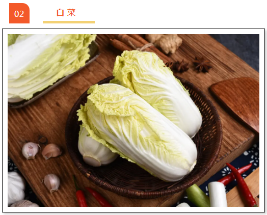 白菜不仅营养丰富、味道鲜美,而且便于储存。白菜中含有丰富的粗纤维,可以促进消化。需要注意的是在烹调白菜时不宜用水焯透,以免大量维生素和微量元素流失。